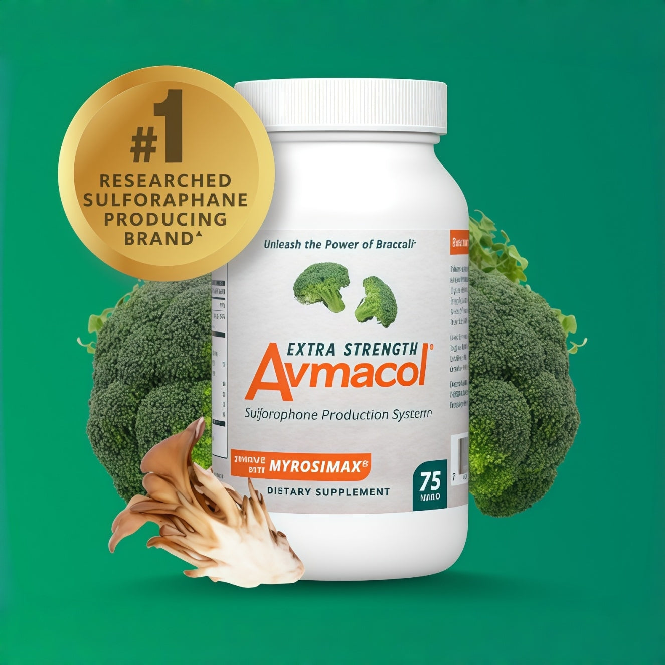 Avmacol® Extra Strength is a patented, sulforaphane-producing supplement that works together with Maitake mushroom extract (a source of beta-glucans) to support your body’s natural detoxification processes, more effectively than sulforaphane alone.