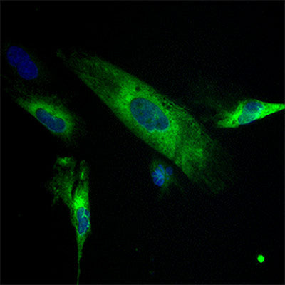 The combination of sulforaphane and Maitake extract supports the movement (or translocation) from the cytoplasm to the nucleus of NRF2 and increases the levels of certain Phase 2 enzymes. Below are images of a technique called immunofluorescence which illustrate how much protein is being produced in the cell and the location of that protein.