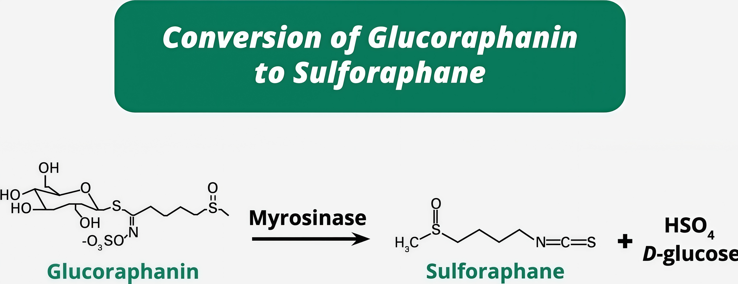 The conversion of glucoraphanin to sulforaphane can be expressed in this simple equation: